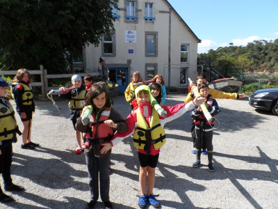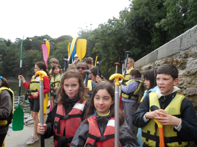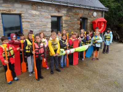 Arrivés au centre, les CM1 de notre classe rejoignent ceux de la classe de Mme Rose. Ensemble, ils vont découvrir la pratique du canoë kayak.