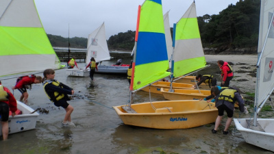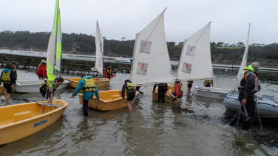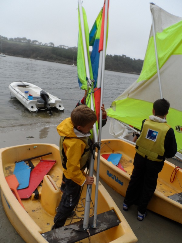 Nous nous répartissons en deux groupes. Certains embarqueront sur des optimists, les autres sur des diablotins.