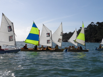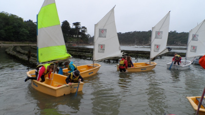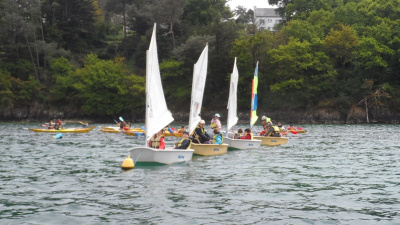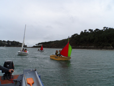 Après quelques essais, les deux groupes se retrouvent pour une régate et prennent ensemble la direction du Bélon.