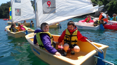 Sur les optimists, on teste les voiles « tempête », aussi appelées voiles « papillon »…