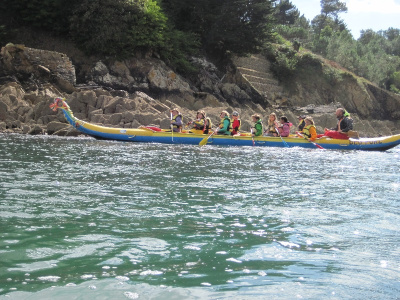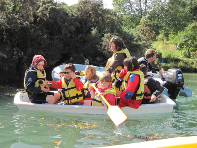 Une fois les embarcations apprêtées, nous nous entraînons à diriger le bateau.