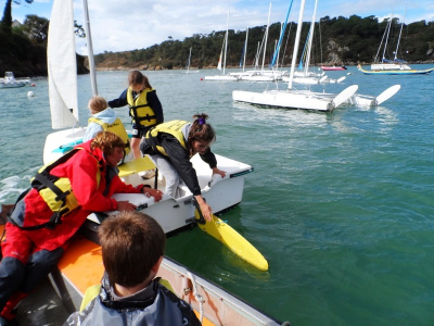Le groupe des optimists se met à l’abri dans l’anse pour faire des petits jeux…